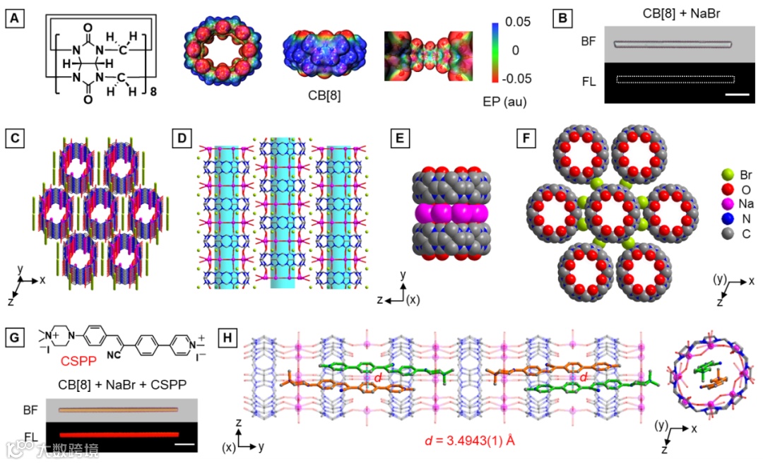图1:CB[8]和NaBr溶液中加入AIEgen 客体前后形成的微棒的单晶结构