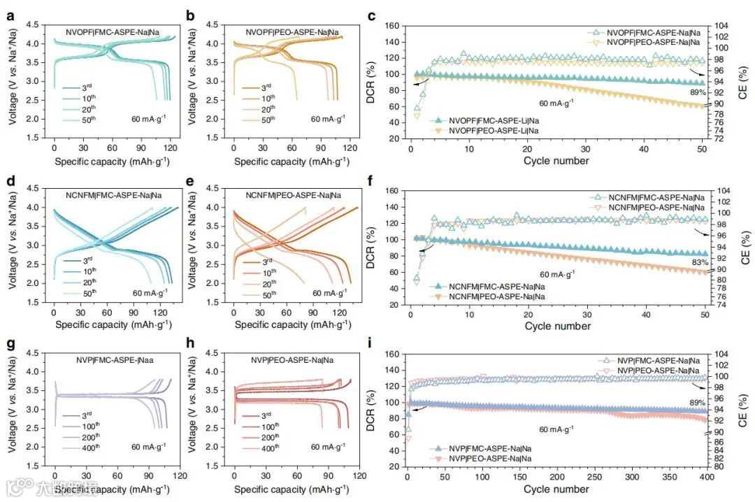 图7:具有不同正极和聚合物电解质的全固态钠金属电池的钠离子存储性能