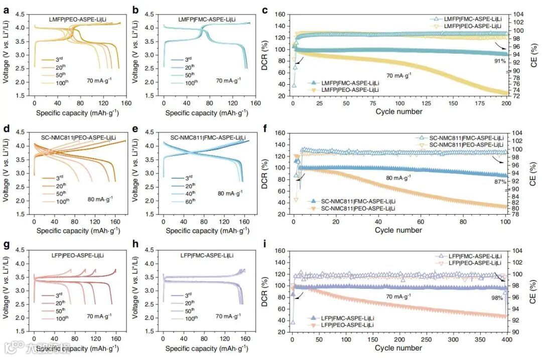 图6:不同正极和聚合物电解质的全固态锂金属电池的锂离子存储性能