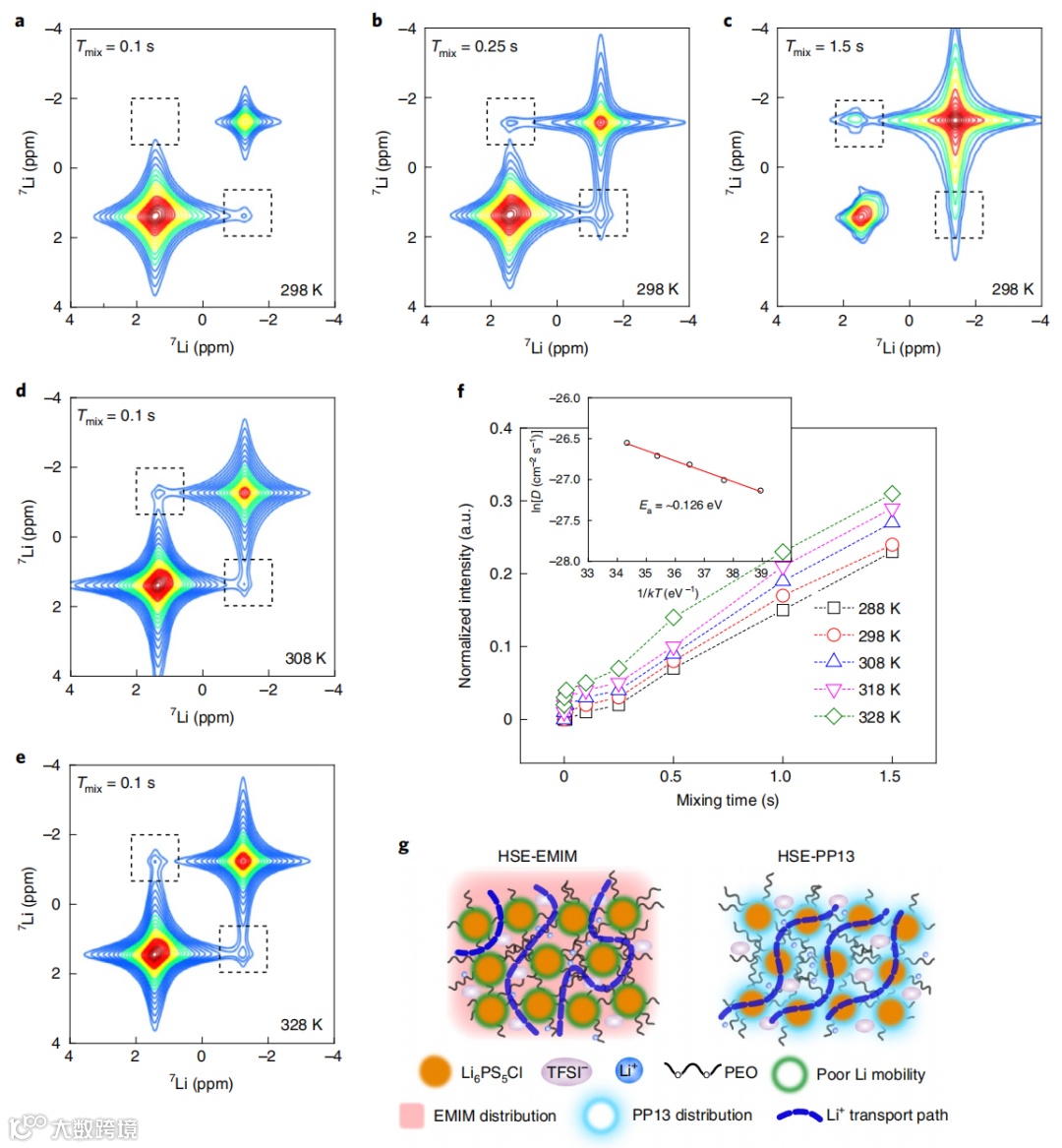 图5:使用PP13-TFSI IL量化HSE中跨相界的锂离子扩散