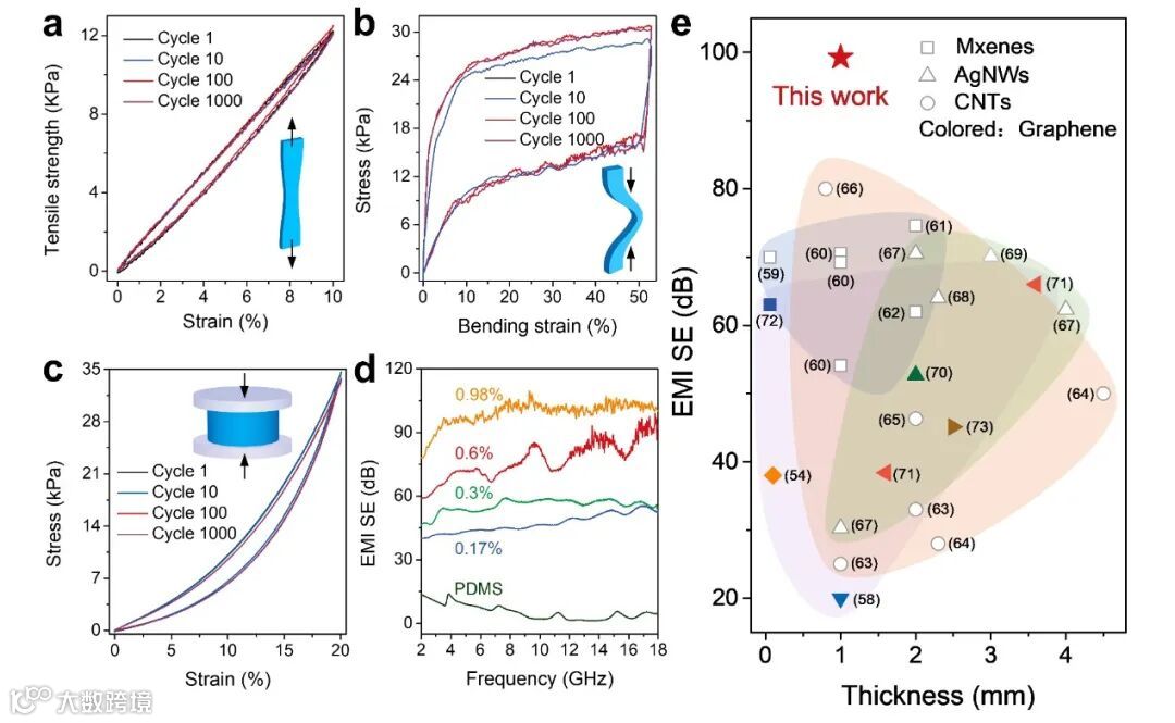 图4 PGCs的机械性能和电磁屏蔽性能。
