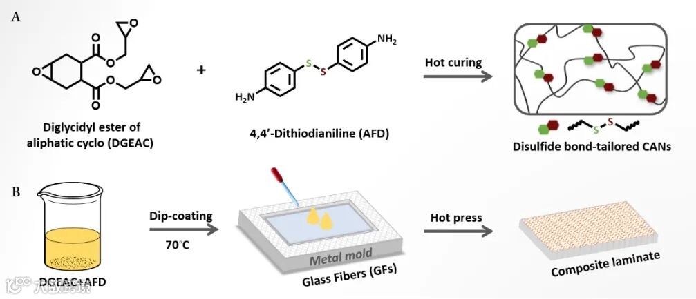 玻璃纤维增强复合材料因其轻质、高强、耐腐蚀等特点,被广泛应用于航空航天、风力发电等领域。复合材料的损伤预测可以降低结构件的故障发生率,节省成本甚至挽救生命。同时,热固性基体的三维交联结构使其一旦损坏或达到服役年限就难以再回收利用。因此,构建具有损伤自报告特性的高性能可回收玻璃纤维增强复合材料是一项有挑战性和吸引力的工作。