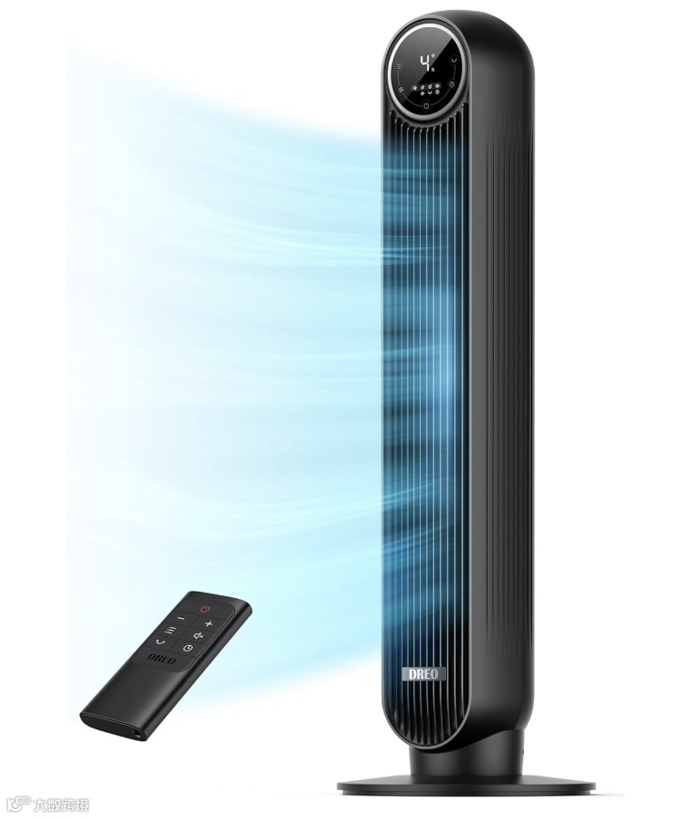 DREO塔式落地扇采用一体式气流系统与高性能电机,风力最高达25英尺/秒,覆盖整个房间。机身高36英寸,占地小,适用于卧室、客厅等场景。支持4档风速与4种模式,可通过触控或遥控操作。90°广角送风结合空气流动优化设计,提升降温效率。静音叶轮与共振控制算法确保低噪运行,适合全年使用。