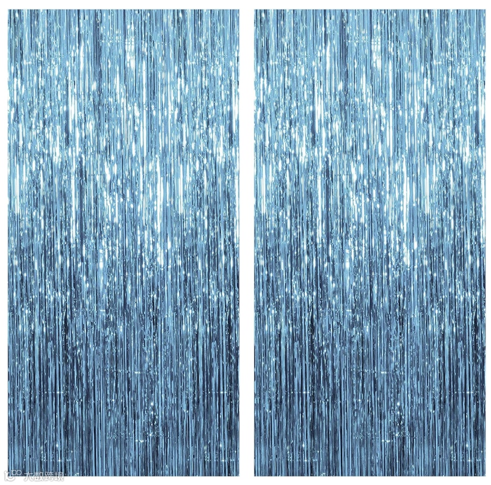 蓝色飘带流苏背景装饰每套含2片,尺寸为3.28英尺宽×6.56英尺高,适合墙面、门口布置。采用金属光泽锡箔材质,色彩亮丽,可搭配LED灯、气球等营造梦幻氛围,广泛用于生日派对、婚礼、节日庆典等场合。