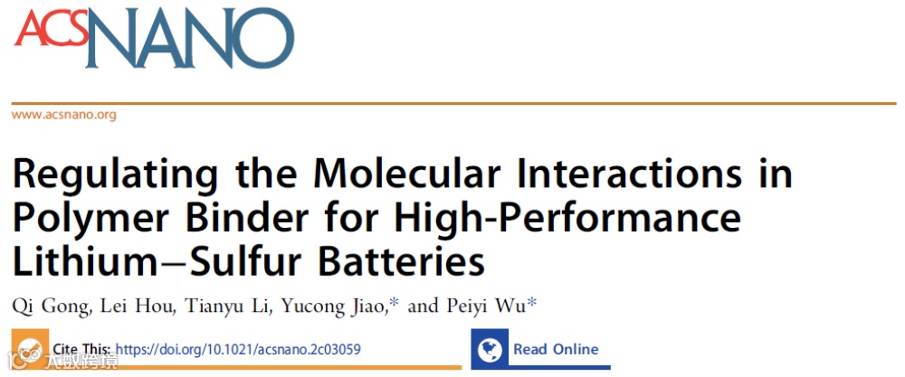 以上成果近期以“Regulating the Molecular Interactions in Polymer Binder for High-Performance Lithium−Sulfur Batteries”为题,在线发表在《ACS Nano》,(ACS Nano 2022, DOI: 10.1021/acsnano.2c03059)上。东华大学化学化工与生物工程学院硕士生龚奇为文章第一作者,武培怡教授和焦玉聪研究员为论文共同通讯作者。