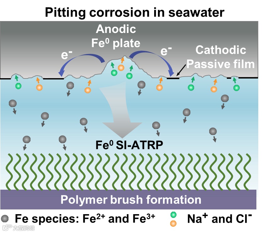 图1 海水加速金属腐蚀促进SI-Fe0ATRP示意图