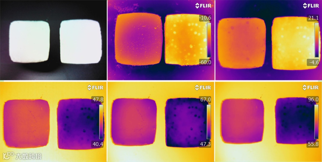 作者进一步对CABs及WTICC的压缩性能进行考查,发现特殊的结构赋予了SiO2基复合气凝胶微球以良好的强度来更好地抵御外力的冲击。CABs自身的高强度以及前述其与水性基体良好的相容性,使得CABs与水性材料复合所得到的复合材料(WTICC)具有优异的抗压性能(图5)。此外,WTICC相较于普通涂层具有更优的保温隔热性(图6)。随着能源形势的日益严峻及建筑能耗的不断增长,建筑节能日益成为人们关注的焦点。这项工作所制备出的独特仿石榴状结构材料可以解决气凝胶与水性涂料复合使用时存在的难题并保留气凝胶良好保温隔热性,为气凝胶材料在建筑保温节能领域的应用提供了新思路。