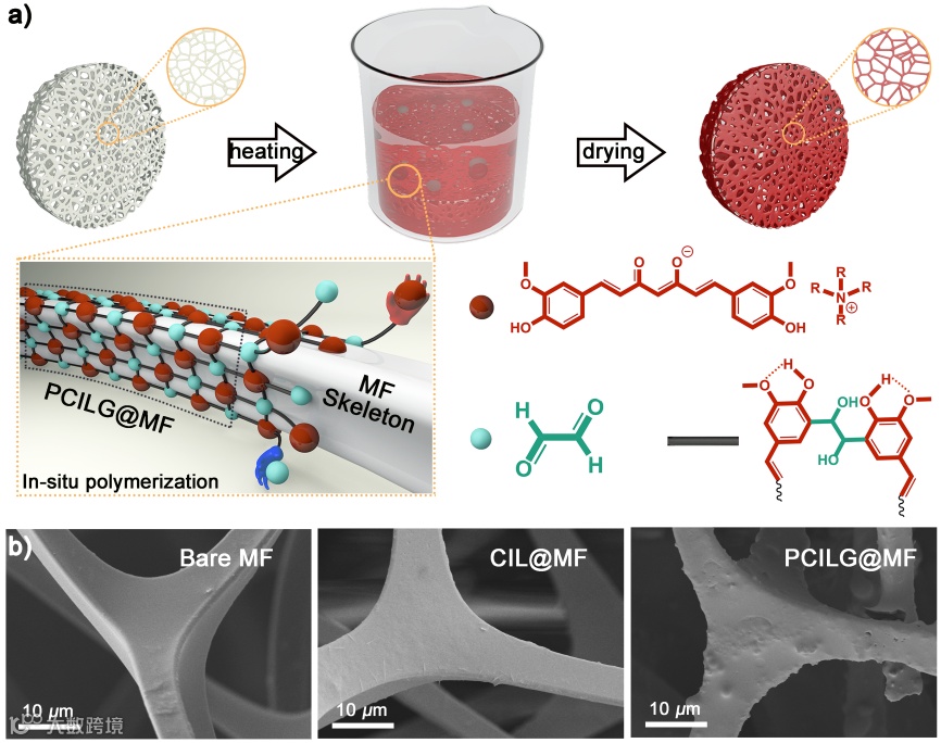 图1. PCILG@MF空气过滤器的制备示意图以及表面微观形貌图