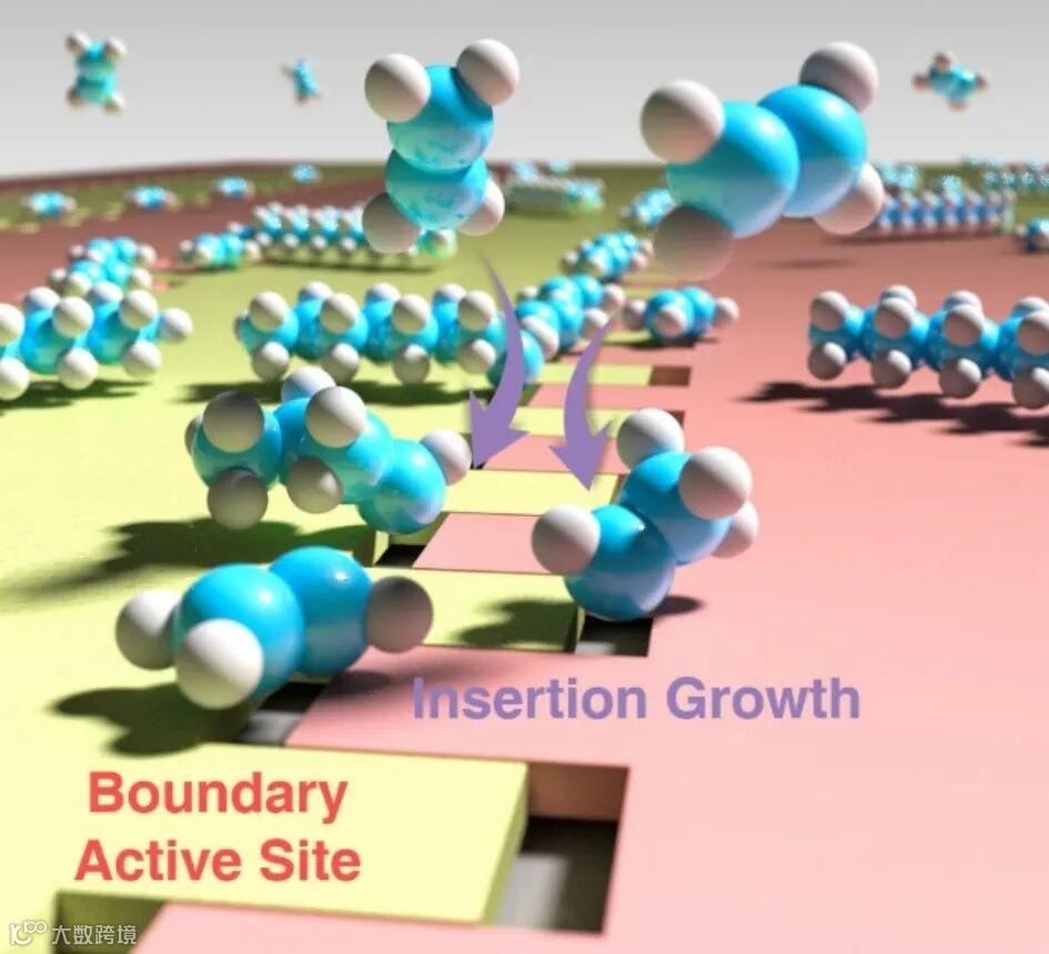 聚乙烯广泛应用于人类社会生活,是全球产量最大的塑料制品原料。乙烯聚合(分为自由基聚合和配位聚合两种)是典型的链式聚合反应,包括链引发、链增长和链终止等步骤。其中配位聚合链增长遵循Cossee-Arlman机理,即乙烯插入到金属催化中心与聚乙烯链连接的金属-碳键之间,实现持续的单体聚合。乙烯聚合的Phillips催化剂在没有烷基铝作为引发剂的情况下如何实现链引发,依然是困扰着学术界的基础问题。