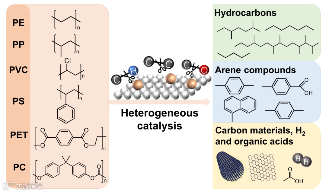 塑料由于重量轻、可塑性强、易于加工、成本低等优点,广泛用于包装、建筑、运输、医疗、电子设备等诸多应用场景,成为现代社会不可或缺的合成材料。每年全球塑料生产量保持在4亿吨左右。虽然塑料行业发展迅猛,但大部分废弃塑料未能有效回收,而是采取焚烧、丢弃或掩埋等方式进行处理。焚烧能够部分回收热能,但排放大量二氧化碳和其他有害气体;丢弃和掩埋不仅造成资源的浪费,而且还会因塑料在自然环境下极难降解,导致环境负担沉重,并严重威胁人类健康。目前,塑料回收主要包括机械加工的物理法和化学回收法。机械加工一般仅适用于热塑性塑料的回收,而且因为受到废弃塑料中各种添加剂的影响,在经历数次回收处理后塑料的性能会大幅下降。化学回收则是利用化学方法通过将废弃塑料转化为高纯度单体或小分子化合物,从而实现循环利用。特别是在温和条件下以化学催化的方法实现废弃塑料高效转化制液体燃料、芳香化学品和功能性材料等高附加值产品尤为引人关注,并成为一种极具发展潜力的回收方法。