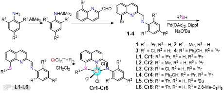 图1. 合成SNN三齿配位的均相铬金属催化剂Cr1-Cr6