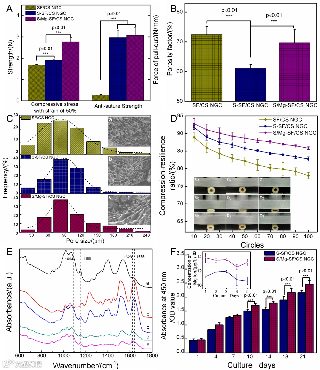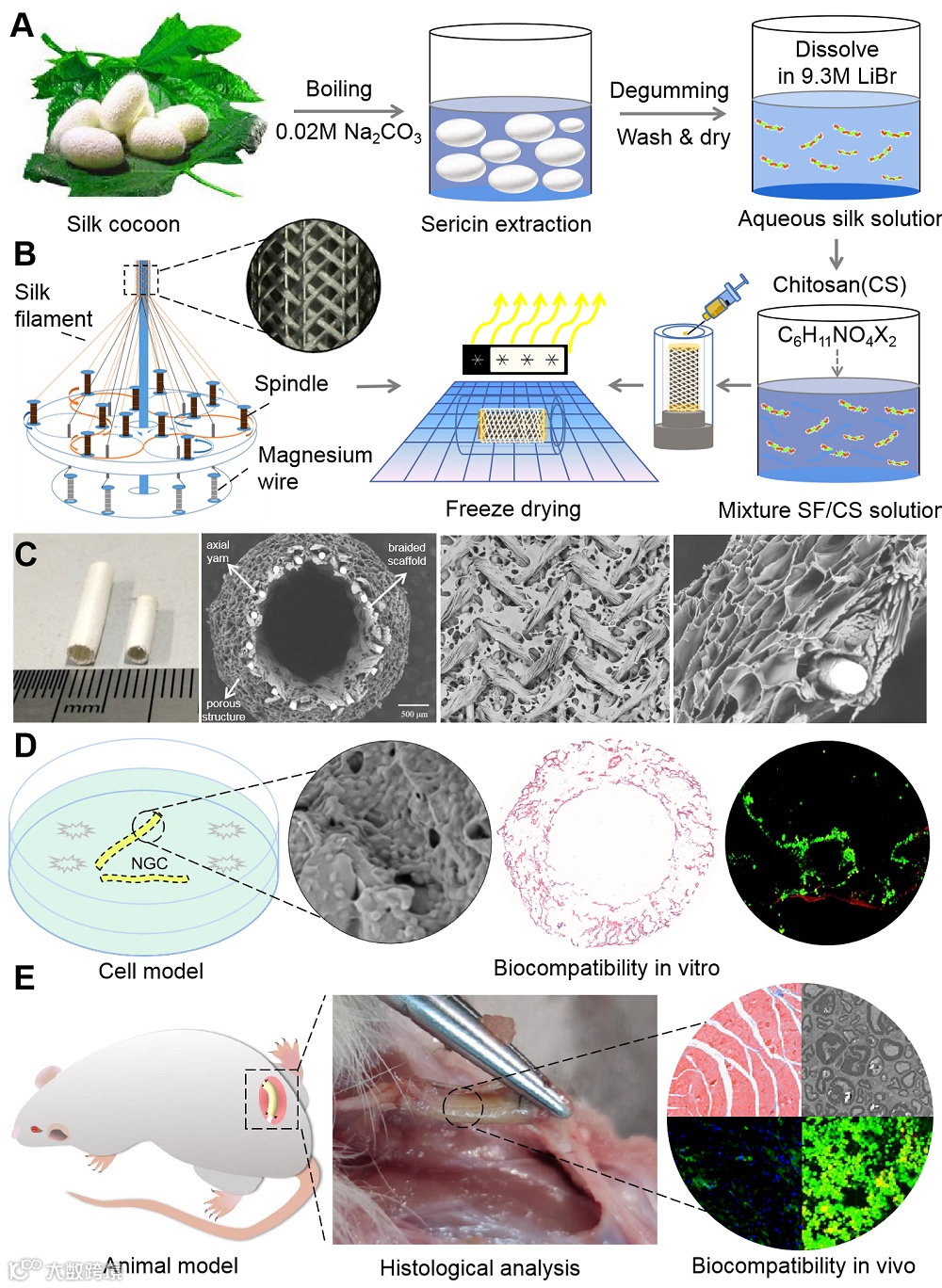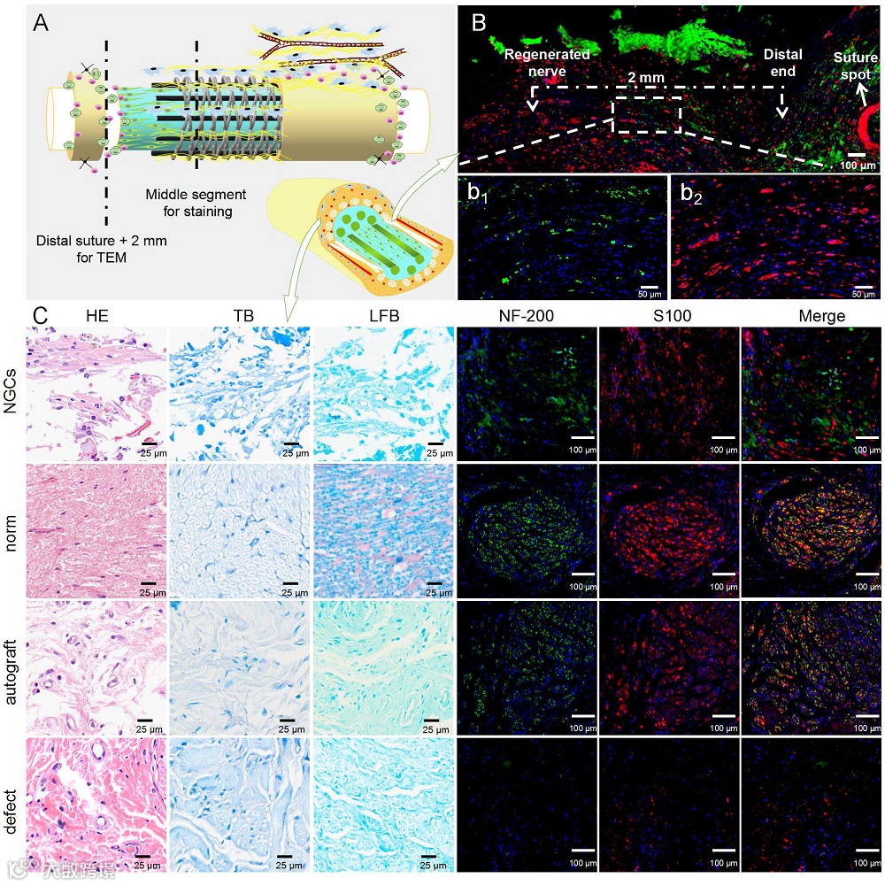 周围神经修复术是一种常见但具有极大挑战性的手术治疗方法,其中自体神经移植方法是修复神经缺损的“金标准”。然而,由于自体供体神经匹配困难且来源有限,供体区域因二次手术容易引起感染、疤痕及神经瘤等并发症发生率高,并且异体神经移植存在交叉感染、疾病传播和免疫排异反应等问题,因此,临床治疗上对神经替代治疗方案有巨大需求。医学和材料研究人员不断寻找合适的人造神经移植材料来代替、引导和促进神经再生,帮助神经功能恢复和重建。