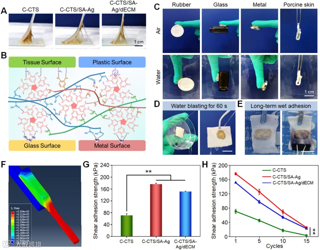 【C-CTS/SA-Ag/dECM双仿生止血水凝胶的粘附性能】