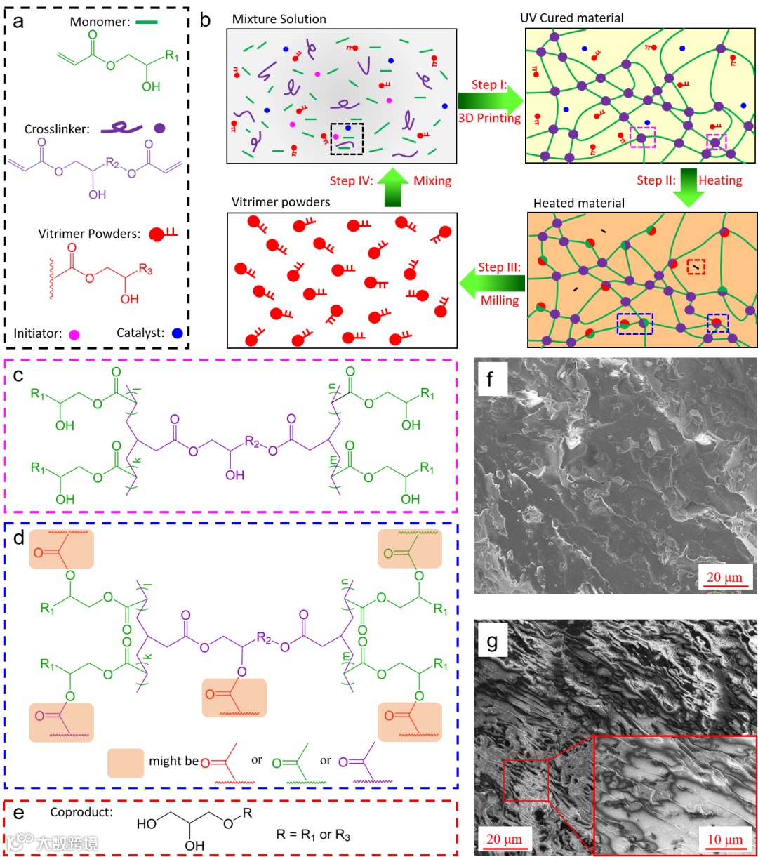 图 1. 通过DLP 3D打印和键交换反应回收vitrimer。