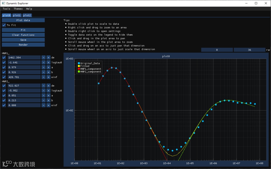 可以看到,软件对于需要分峰的数据拟合效果非常的好,特别是有多个松弛过程的介电函数和电模量的数据。使用HN方程可以得到非常好的效果。