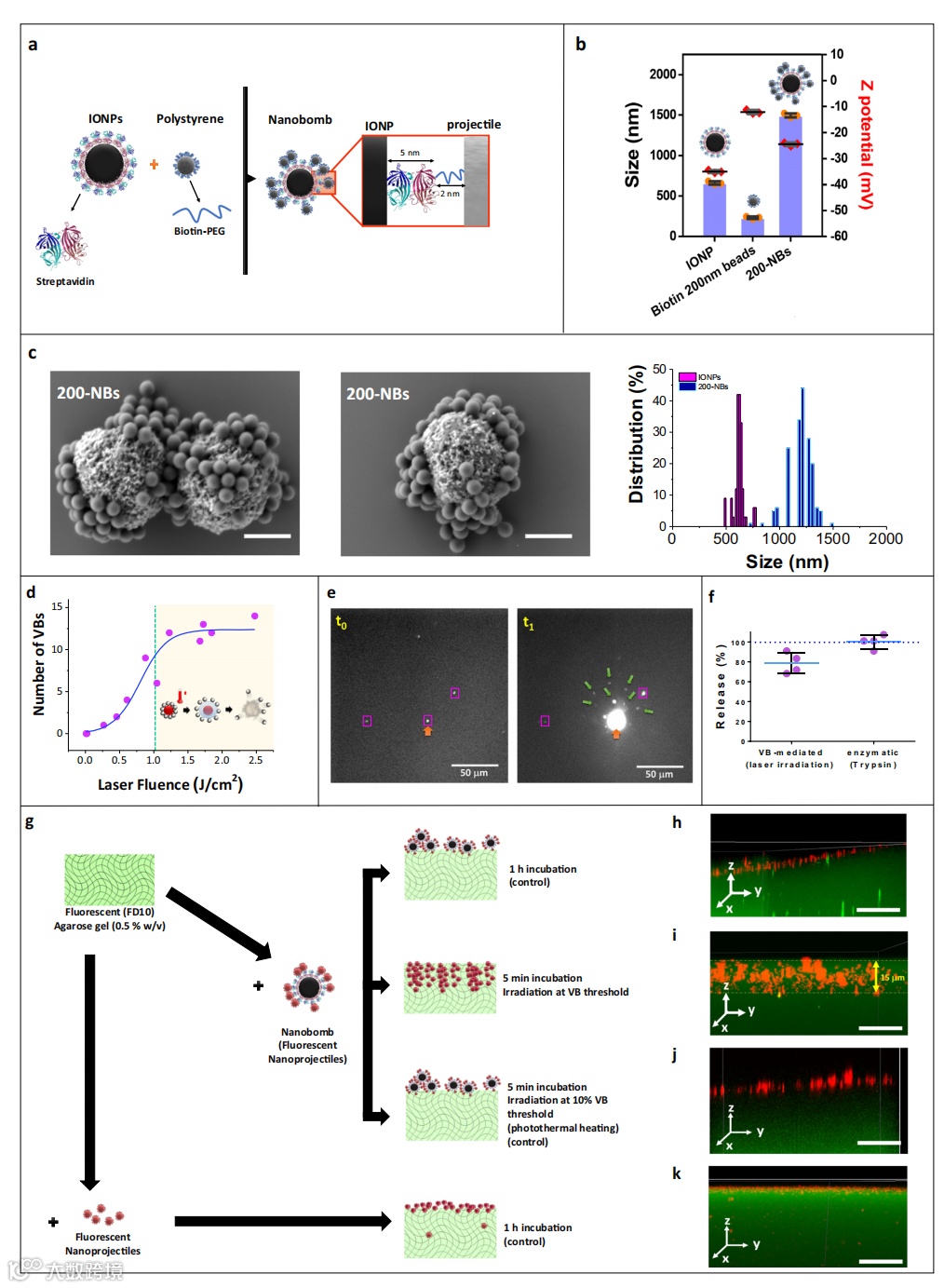 图3 由四氧化三铁核纳粒和200 nm聚苯乙烯纳米球组成的200-“纳米炸弹”的合成、表征和激光引发。