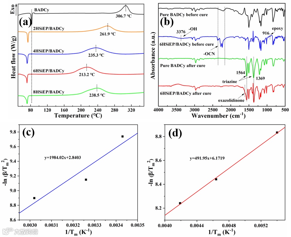 图2. HSiEP/BADCy的固化性能分析