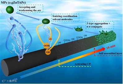 图1. ZnTAPc在短时间内以“化敌为友”的放电行为活化改性碳纤维流程