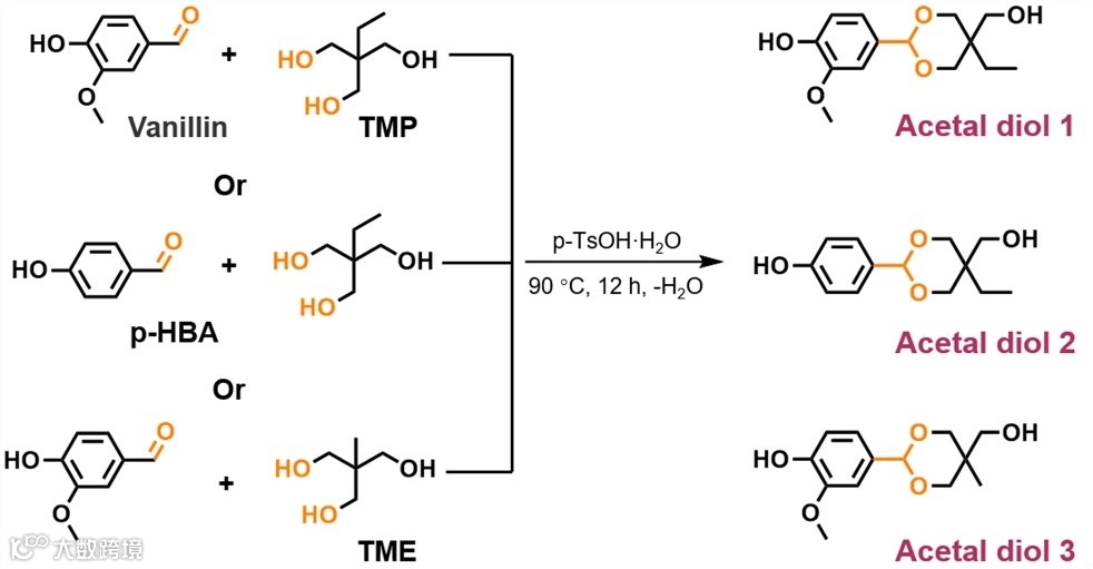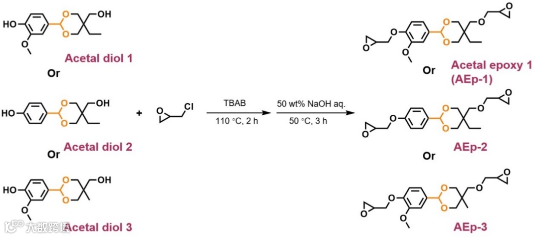 图2 缩醛环氧单体AEp-1、AEp-2和AEp-3的合成
