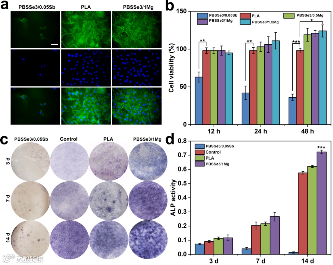 Figure 3. Biocompatibility and bioactivity of PBSSe3/1Mg in vitro.