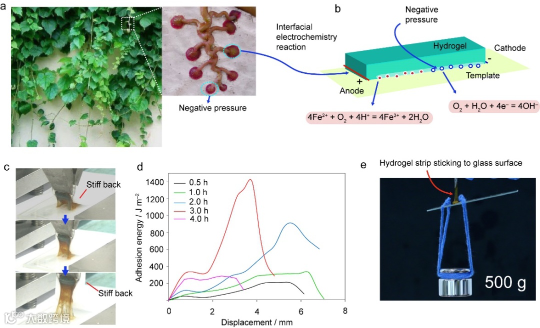 图2.爬山虎启发的水凝胶电化学粘附策略