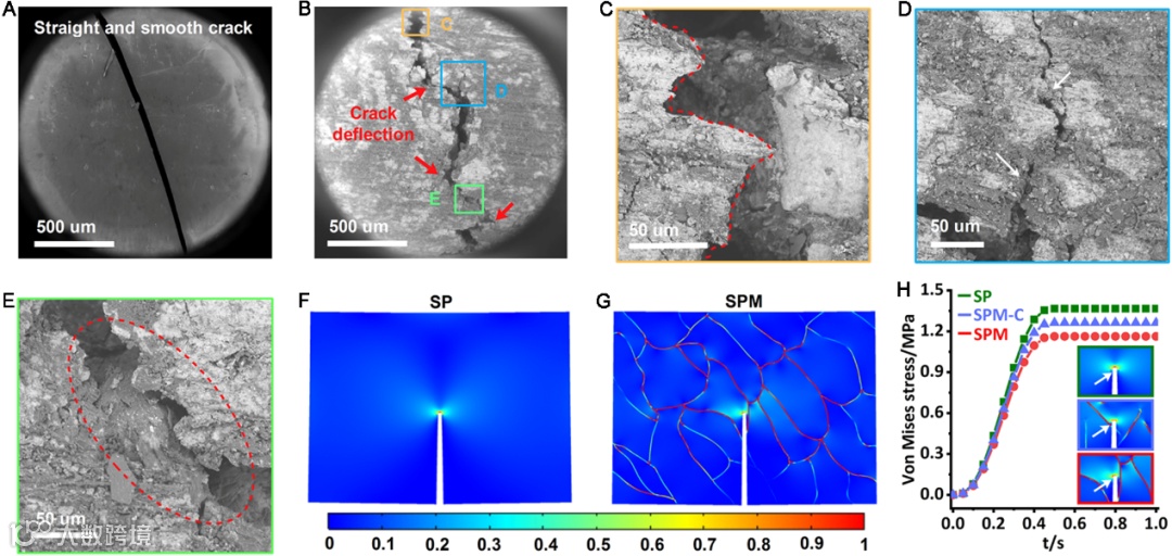 图3 仿生复合材料的的断裂SEM和有限元模拟实验