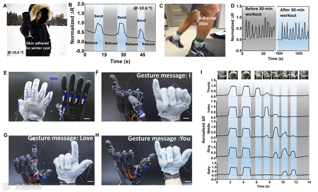 图2. iSkin应用于低温可穿戴传感和人机互动