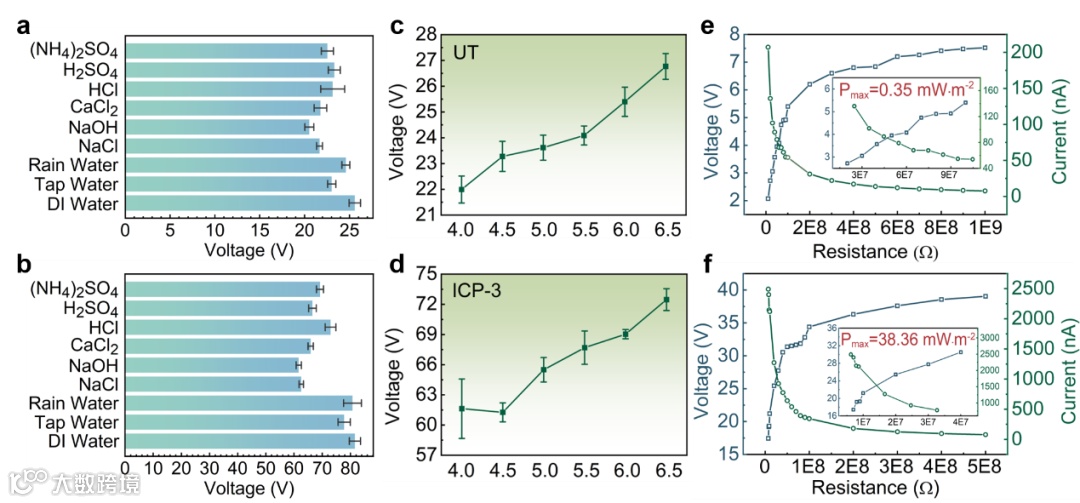 图4. 不同降雨参数下RDE-TENG 的输出表现。