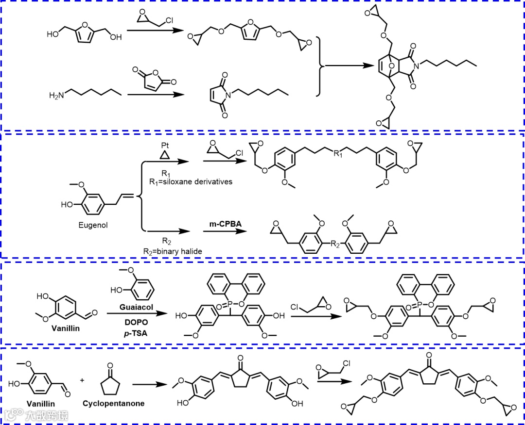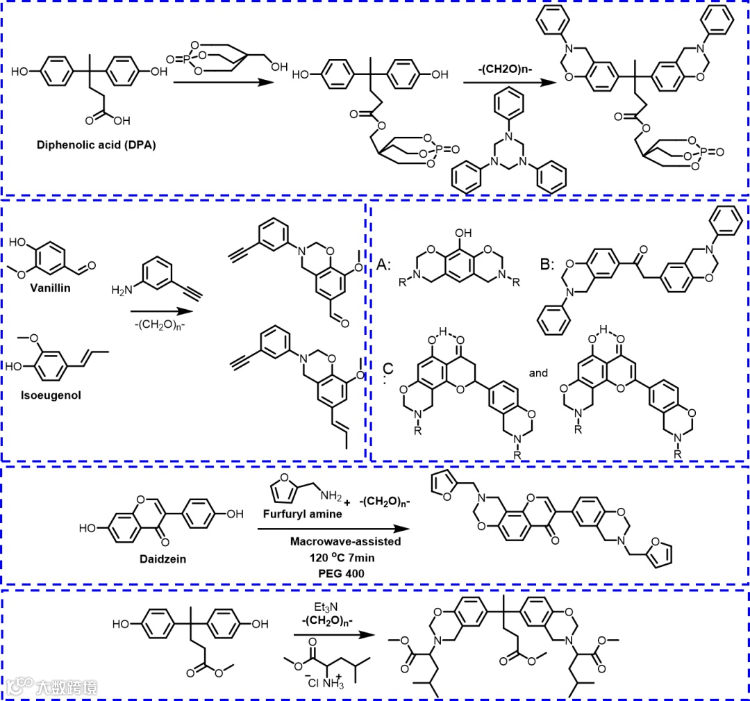 图2:部分生物基苯并噁嗪树脂的合成及单体结构