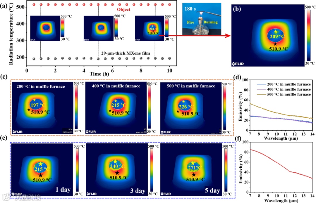 图4. MXene薄膜的高温热伪装稳定性