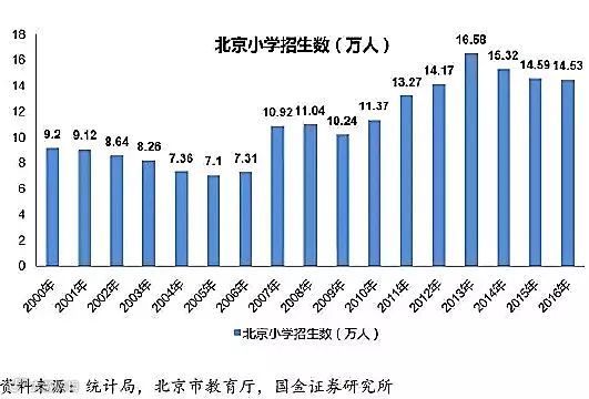 上海北京面临的是另一个问题:外来人口的急剧涌入,使得新生人口显著增加,上海和北京的小学和中学生,正在急剧增长。但这一部分带来的竞争,刚刚体现在幼升小和小升初,还没来得及体现在高考,甚至还没来得及反映在中考。