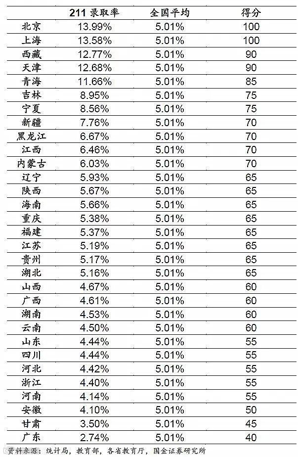 211录取率:指该省所有高考考生中,被211高校录取的人数比例。全国平均大约是5.01%。