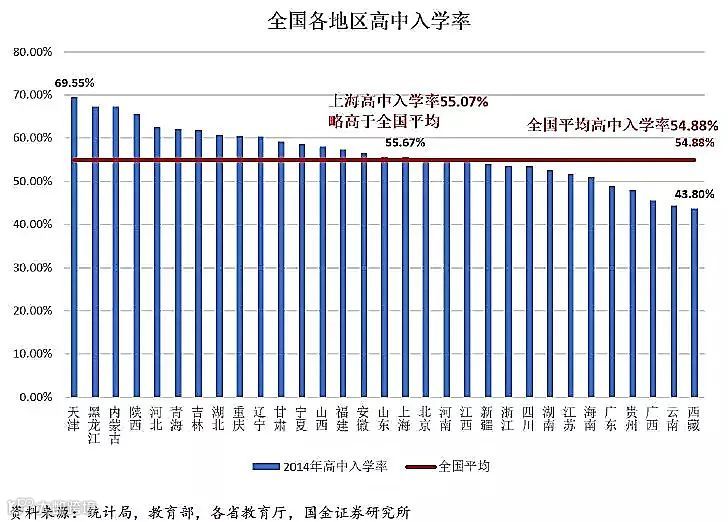 上海确实只有一半人能上到高中,但是全国范围内其他省市也都是这样的。