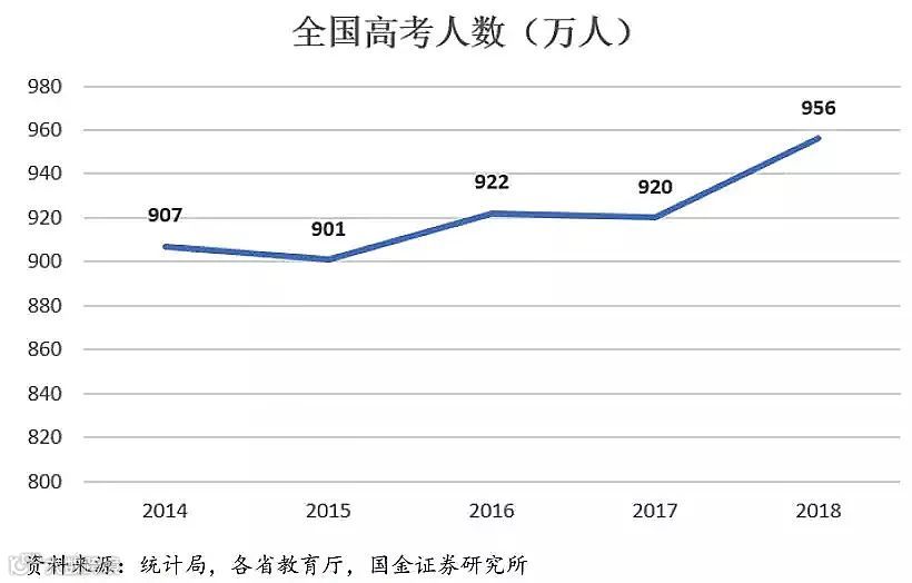 而另一方面,尽管2015-2018年高考适龄人数是在减少的,但是高考人数其实是增加了的。