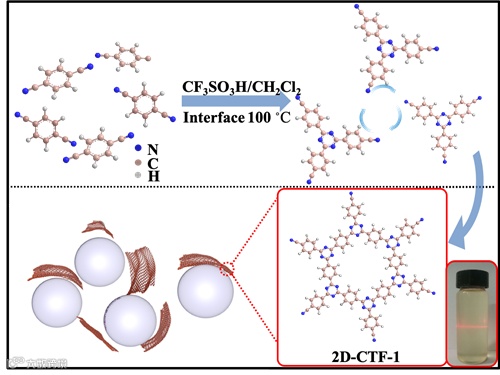(1)酰胺类COF吸附材料:课题组根据软硬酸碱理论设计了两种具有不同骨架和官能团含量的酰胺类二维COF纳米材料:芳香二胺构筑的COF-TP和脂肪二胺构筑的COF-TE。酰胺基通过多配位作为Pb(II)活性吸附位点,其中较少的芳香族骨架和弱的堆积使得Pb(II)在COF-TE中具有更高的扩散能力,见图1,对Pb(II)具有较高的饱和吸附容量(185.7mg/g),并具有优异的再生性能。相关工作发表在Chemical Engineering Journal 370 (2019) 822-830。