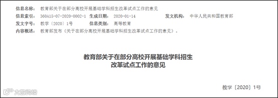 说到这里就要介绍下教育部新推出的“强基计划”。2020 年 1 月 15 日,教育部发布《关于在部分高校开展基础学科招生改革试点工作的意见》,宣布自 2020 年起,不再组织开展高校自主招生工作,启动基础学科招生改革试点,简称「强基计划」。