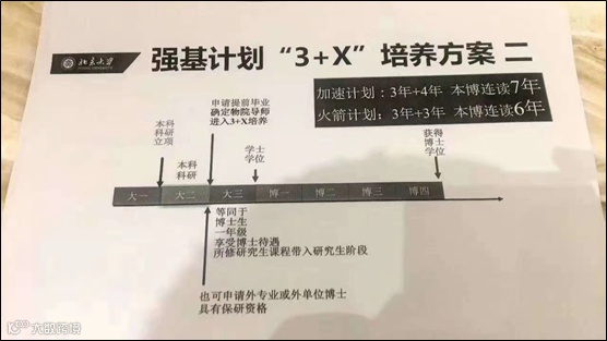 据悉,这个北大物院的火箭计划「3+X」培养方案有两种,一种是加速计划,本博共计 7 年;另一种是火箭计划,本博共计 6 年。