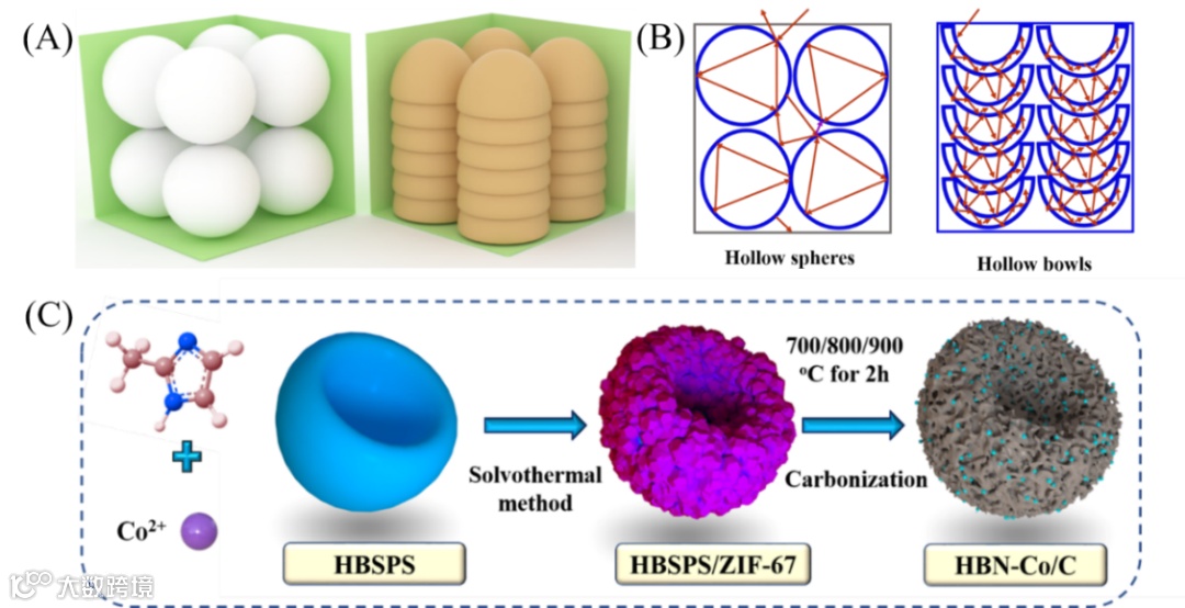 图1 空心碗状的氮掺杂钴/碳多孔纳米复合材料(HBN-Co/C)设计及制备示意图