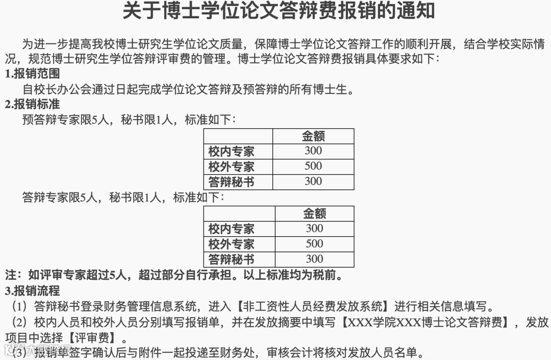 图源:某高校论文评阅答辩费用报销指南
