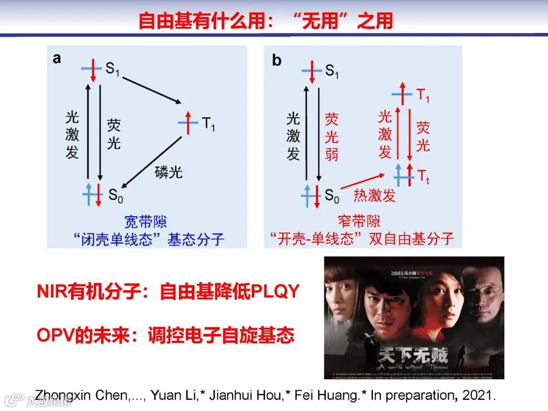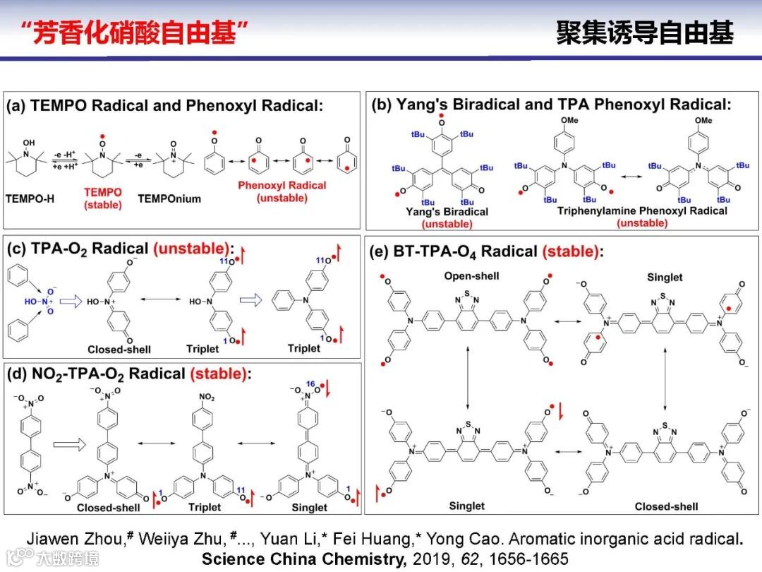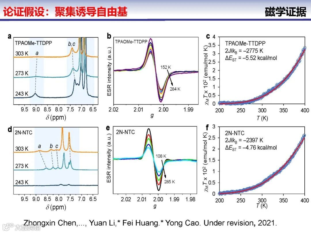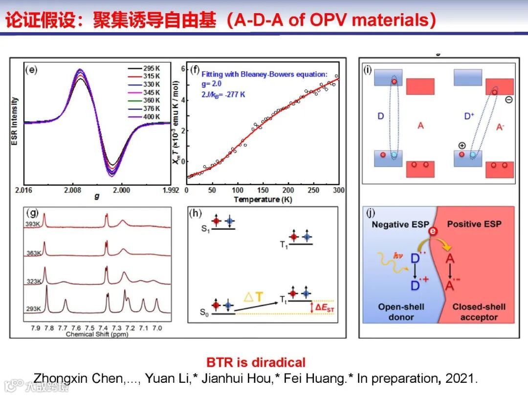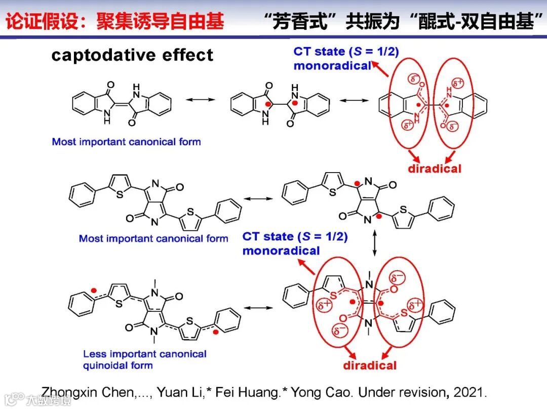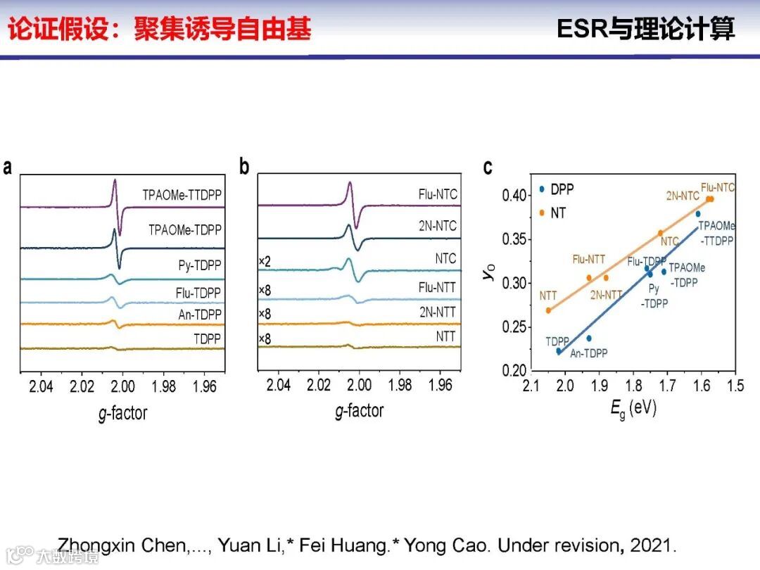 “聚集诱导自由基”(AIR),这一新概念为理解“窄带隙给体-受体有机半导体”的结构-性能关系提供了一个新的视角,对理解有机半导体的基态和激发态过程,以及光/电/磁/热/声的相互作用和转换机制具有重要基础研究意义。