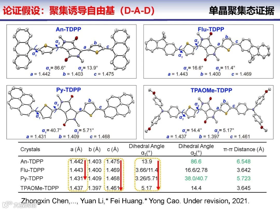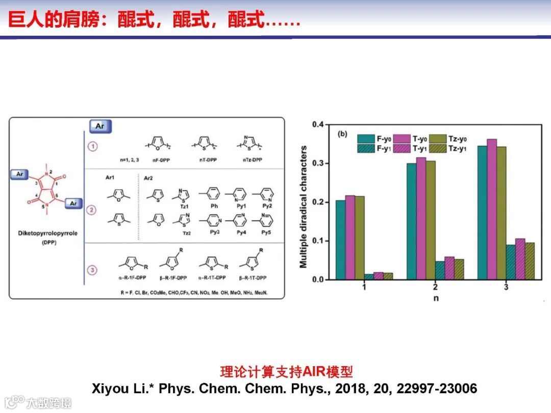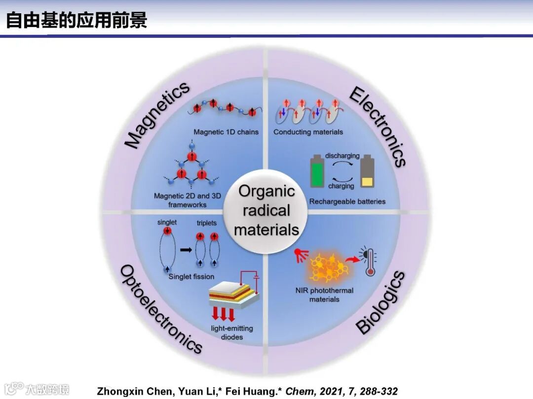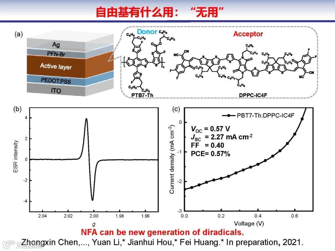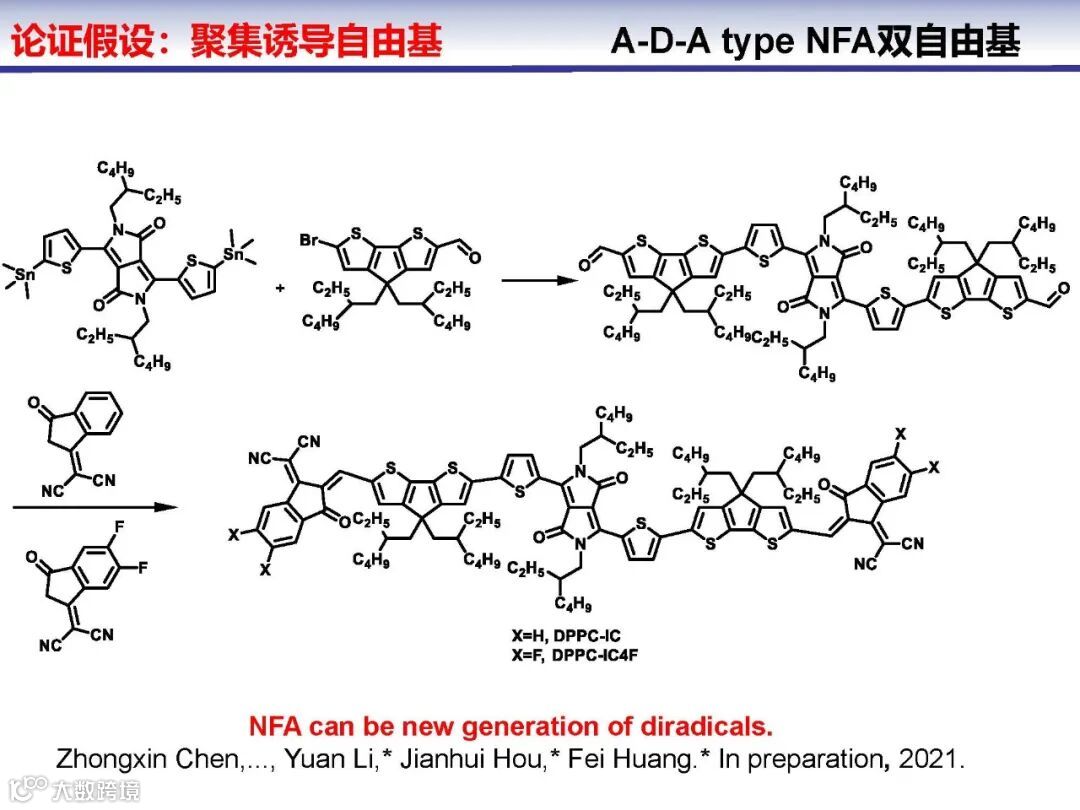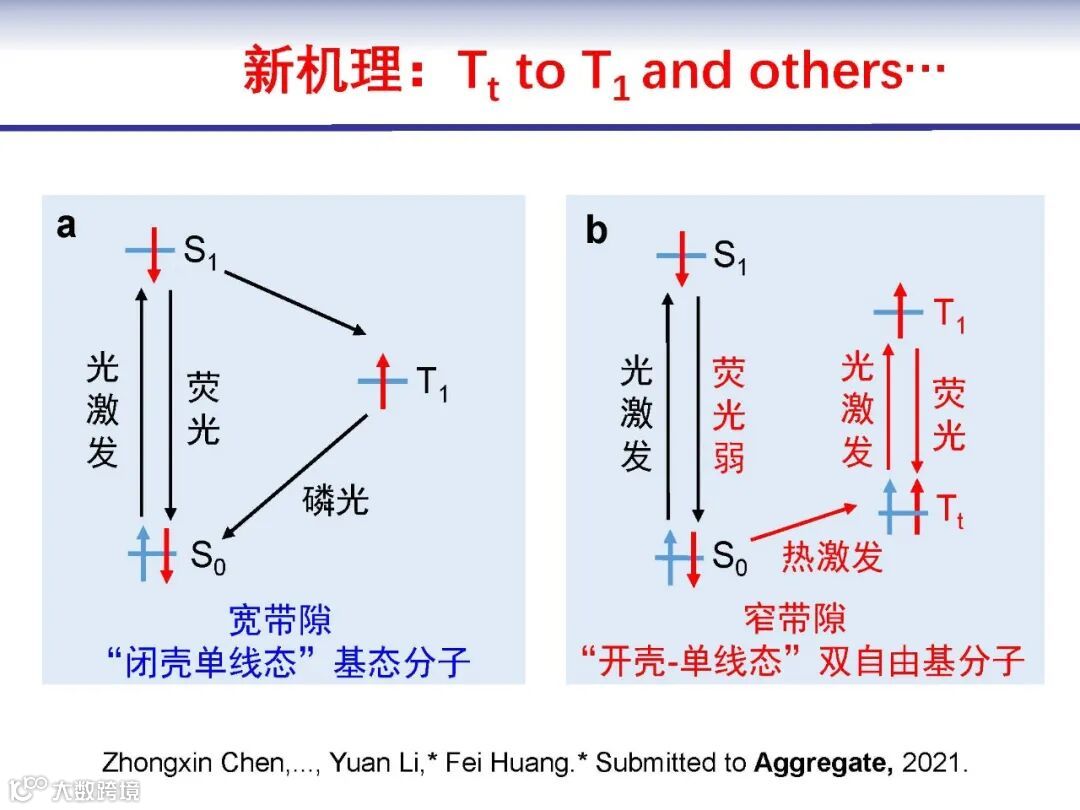 “聚集诱导自由基”(AIR),这一新概念为理解“窄带隙给体-受体有机半导体”的结构-性能关系提供了一个新的视角,对理解有机半导体的基态和激发态过程,以及光/电/磁/热/声的相互作用和转换机制具有重要基础研究意义。