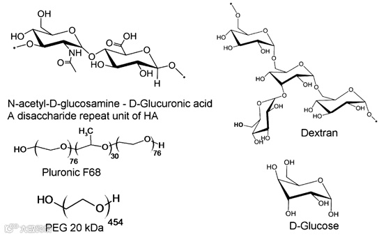 多糖透明质酸(HA)是细胞分泌在细胞表面粘稠物(糖萼)的主要成分之一,与糖萼其他成分形成氢键参与细胞增殖和形态的调控。在本文中,作者开展了验证PEG与HA在水性介质中的相互作用的研究。