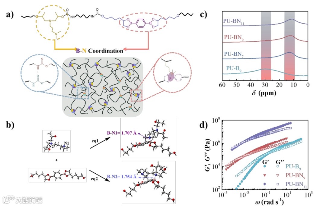图1.超分子聚氨酯弹性体的分子设计策略及硼-氮(B-N)配位作用