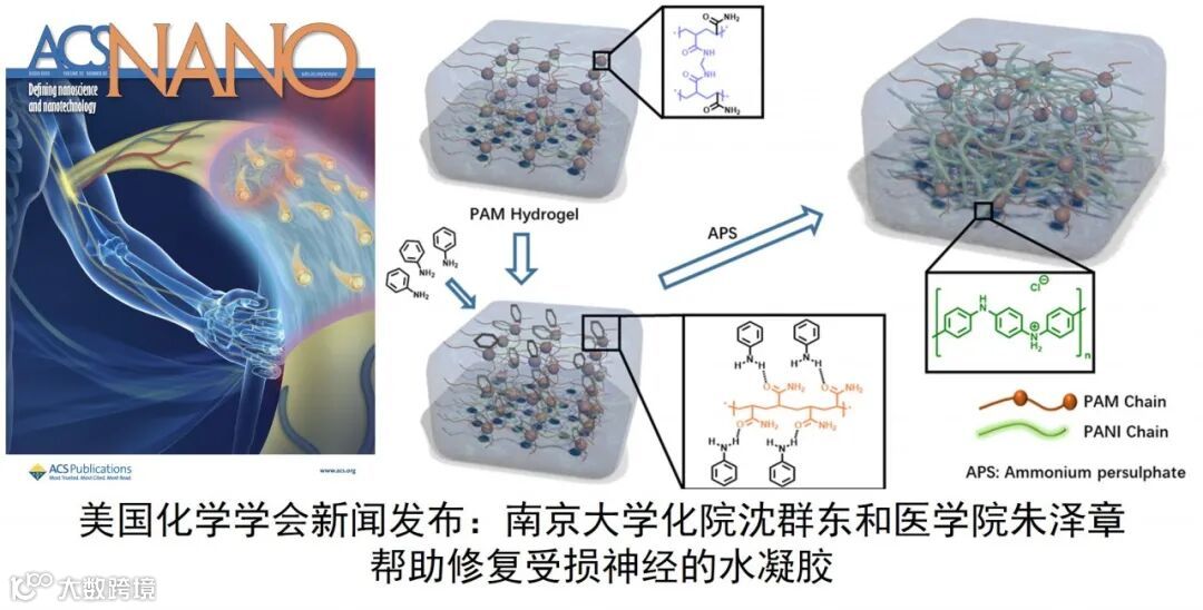 外周神经被完全切断的损伤,例如事故造成的深切口,是很难治疗的。一种常见的治疗策略被称为自体神经移植。它是从身体其他部位移走一段外周神经,然后缝在被切断神经的两端。然而,该手术并不一定能恢复神经功能,有时还需要多次后续手术。人工神经移植物与支持细胞相结合的治疗策略也被使用,但通常需要很长的时间神经才能完全恢复。南京大学沈群东教授、南京工程学院王倡春副教授、南京鼓楼医院主任医师朱泽章教授和他们的同事们想要开发一种有效、迅速起作用的治疗方法来替代自体神经移植。为此,他们决定探索导电水凝胶——一种可以传输生物电信号的遇水膨胀的生物相容性高分子。