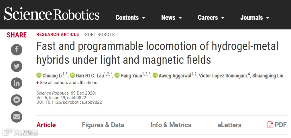 UCSD 蔡盛强团队应用“液晶弹性体”开发一种便携式多功能软机器人