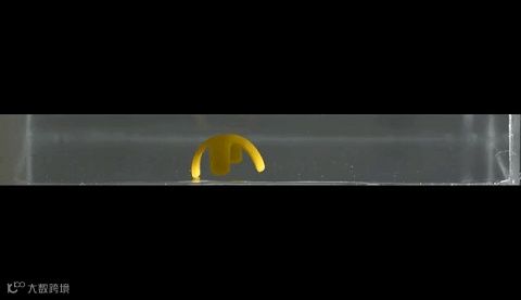 研究团队使用化学合成法来编程该材料的分子以响应光照。当暴露在光下时,机器人的材料分子会变得疏水(排斥水),导致内部水分丧失,从而使材料的液体稠度达到一定标准,这样才能响应磁场。这种转换使机器人能够继续工作,并从原本的平面形态弯曲到“站立”状态。