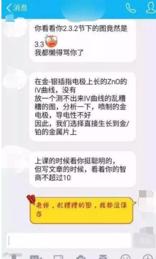 :我可能比窦娥还冤,说我记不住你的名字,我想说做实验,开周会,课题讨论你都不来,我真的不是故意不记你名字。你说我总是不看你论文,其实是我实在看不下去,我怕自己忍不住改的就剩标题了。你说我做实验不管你,我想说我就差把实验数据给你整理出来了。英文论文你写不出来,我让你写中文的,你还写不出来,这我能怎么办?什么叫文献综述这样的问题你都能问出来,我没打你就已经很仁慈了,好不?