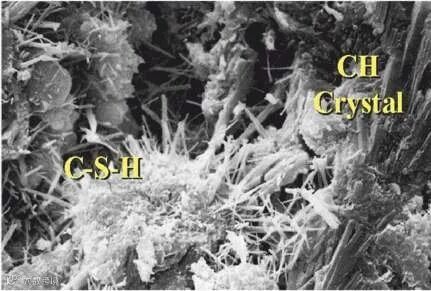 常见的波特兰水泥,也就是硅酸盐水泥的主要成分是石灰石、粘土、石膏、沙子。加入水后,混凝土就会发生水化反应,最终形成水化硅酸钙 (C-S-H)。水化硅酸钙就是水泥力量的化身了。