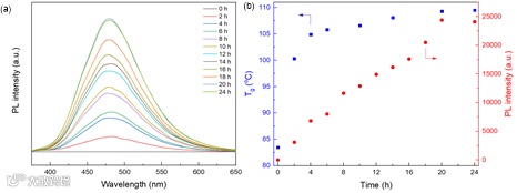 图2. 交联过程中荧光强度和玻璃化转变温度的变化