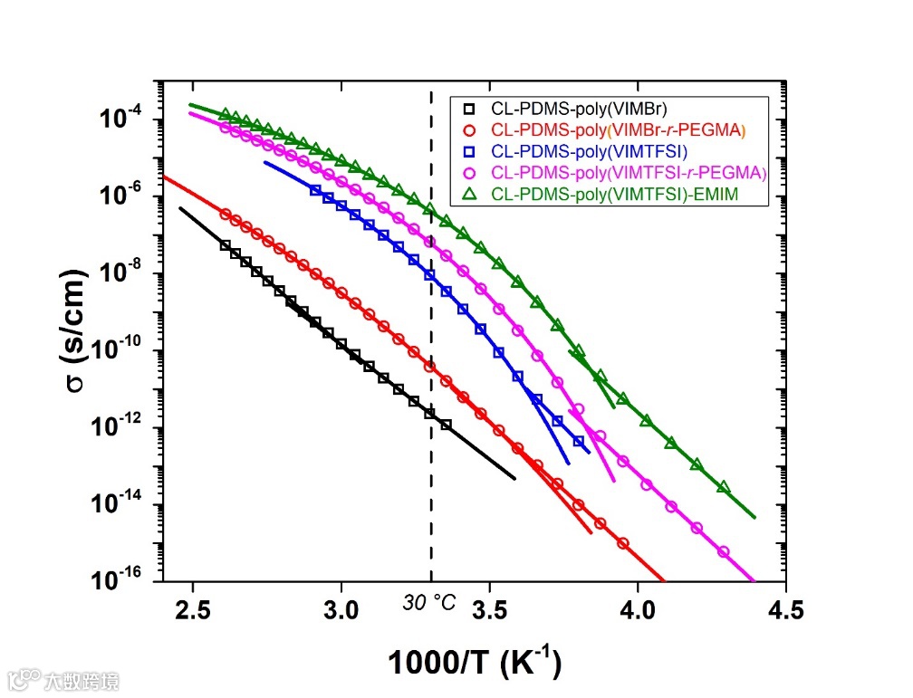 图3. E-PILs的离子电导率对应不同温度的曲线。